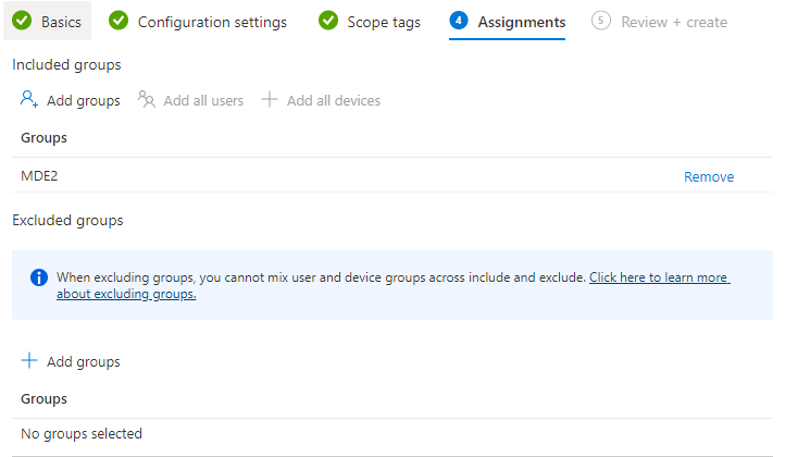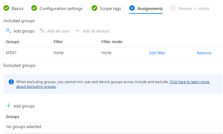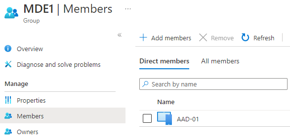 AAD-01 Device 할당된 MDE1 그룹을 할당합니다.