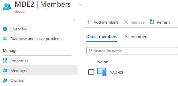 이번에는 AAD-02 Device 있는 MDE2 그룹을 지정합니다.