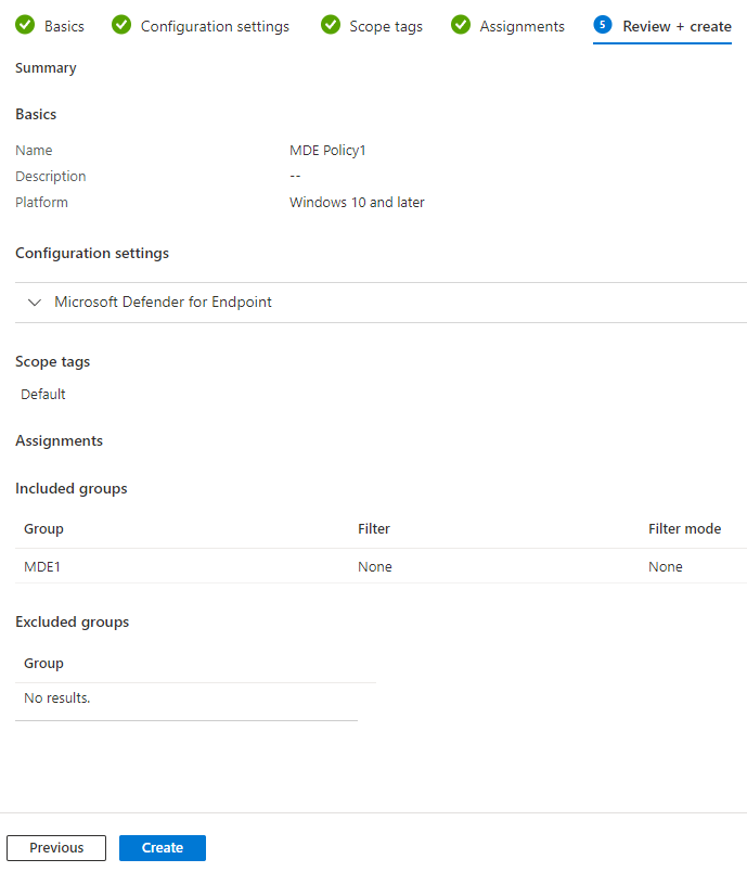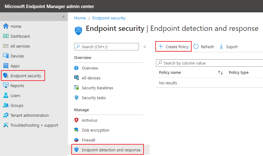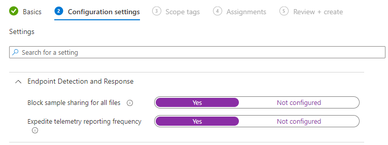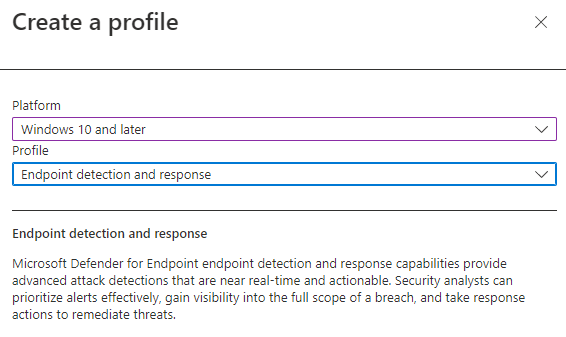 MEM Admin center -> Endpoint security -> Endpoint detection and response -> Create Policy