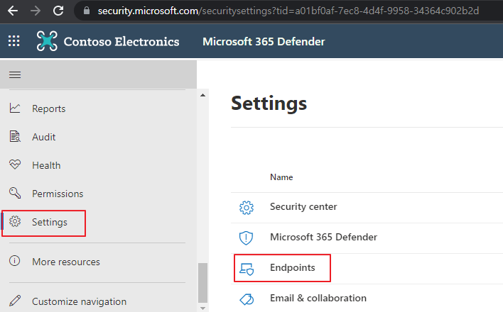 M365 Defender (https://security.microsoft.com) -> Settings -> Endpoints