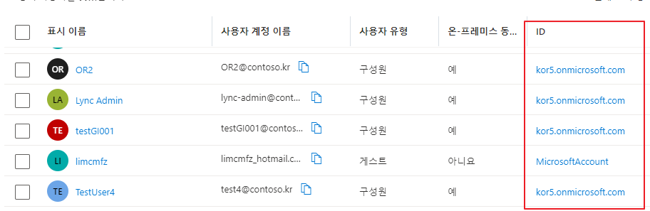 그리고는 아래와 같이 #EXT#@Tenantname.onmicrosoft.com 형태로 Azure AD에 계정이 생성됩니다.