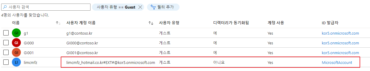 3. 초대된 사용자는 사용자 유형이 게스트 입니다.