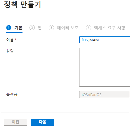 앱 -> 앱 보호 정책 -> 정책 만들기 -> iOS/iPadOS