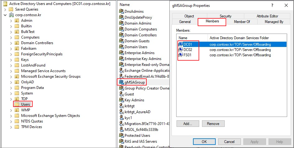 # If the identity is a gMSA, first to create a group and add the gMSA to it:
