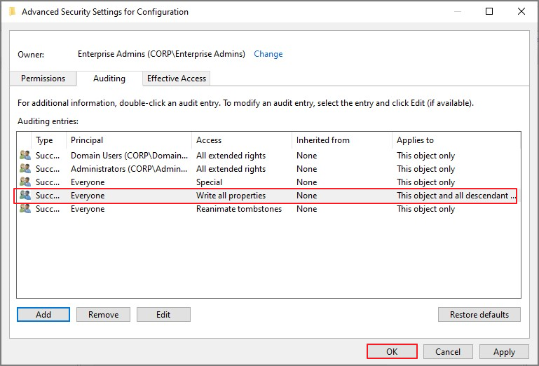 위에서 진행한 것과 같은 방식으로 Descendant Group object, Descendant Computer object, Descendant msDS-GroupManagedServiceAccount Objects, Descendant msDS-ManagedServiceAccount Objects 진행