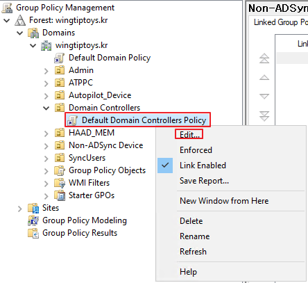이 정책은 도메인 컨트롤러를 제외한 나머지 PC들에 적용해야 합니다.