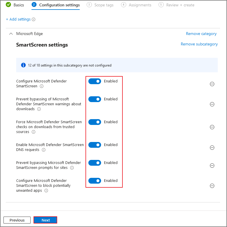 Edge에서 Web Protection을 적용하려면 Smart Screen을 활성화 해야합니다.