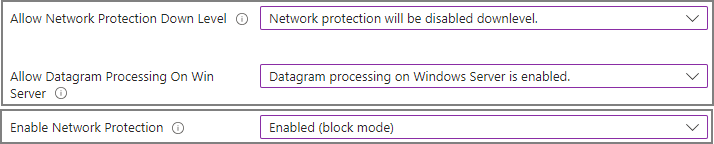 | Allow Network Protection Down Level | Network protection will be disabled downlevel |