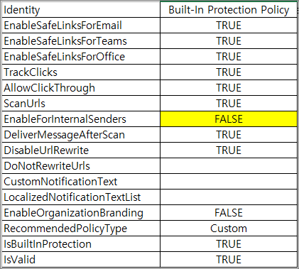 기본 정책에서 EnableForInternalSenders는 False인 것을 알 수 있습니다.