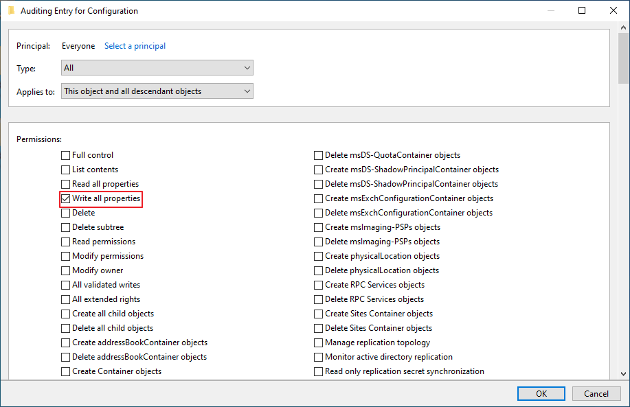 Read all properties, Write all properties 체크 -> OK