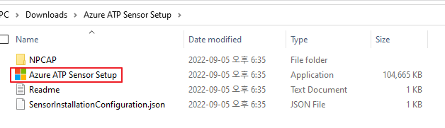 다운로드한 zip파일을 압축해제 한 뒤, Azure ATP Sensor Setup 을 실행합니다.