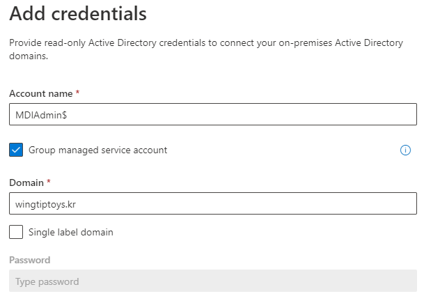 New-ADServiceAccount -Name MDIAdmin -DNSHostName “mdiadmin.wingtiptoys.kr” -PrincipalsAllowedToRetrieveManagedPassword MDIService