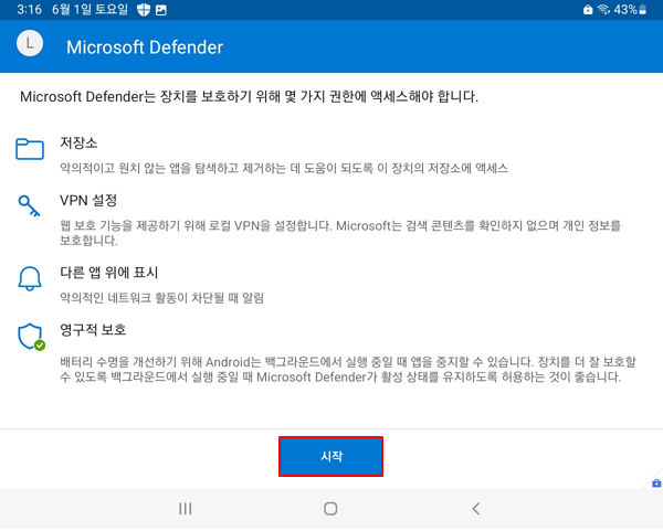 우선 Android에서 별도의 설정 없이 Defender App을 설치해보겠습니다.