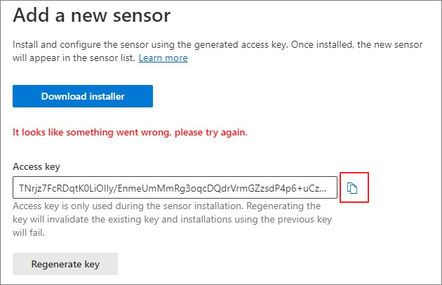 Access key 복사 → Download installer → 설치 진행 (Domain Controller 및 ADFS 에서 진행)