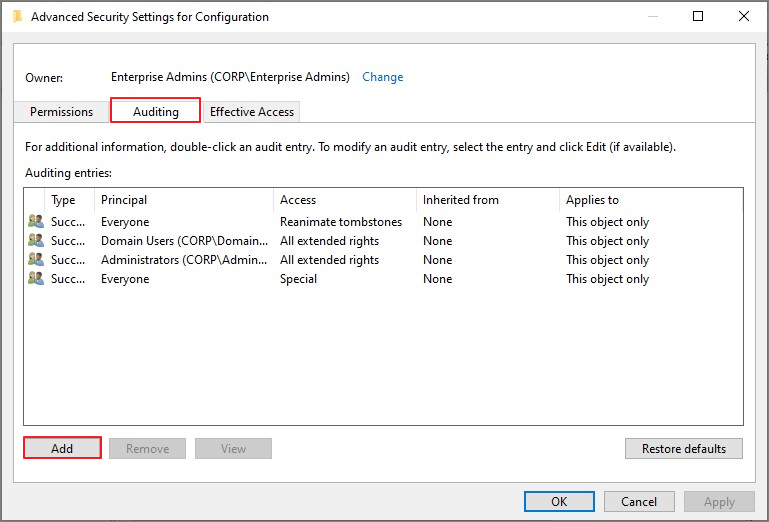 5. Enabling auditing on an ADFS object (ADFS 구성시)