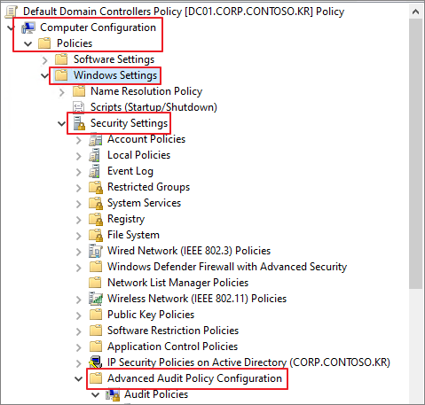 Computer Configuration → Policies → Windows Settings → Security Settings → Advanced Audit Policy Configuration
