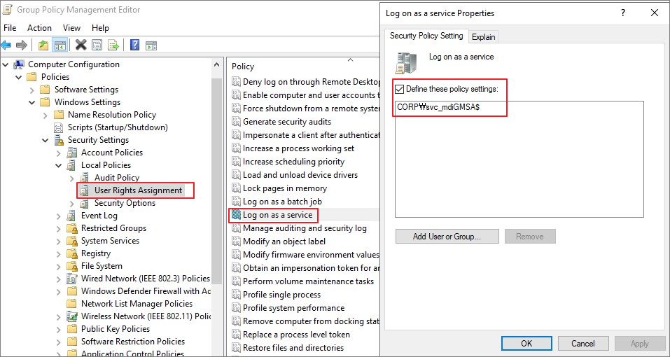 # If the identity is a gMSA, first to create a group and add the gMSA to it: