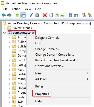 ADUC(DSA.msc) → 도메인 우클릭 → Properties