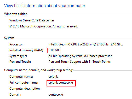 아래와 같이 Windows Server 2019, AD Join 된 환경에서 진행하였습니다.