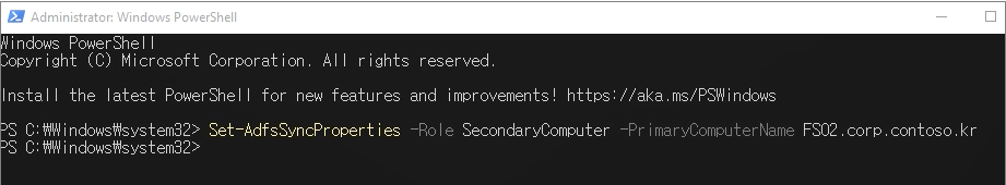 ADFS 서버를 Secondary로 전환하는 명령어를 진행합니다.