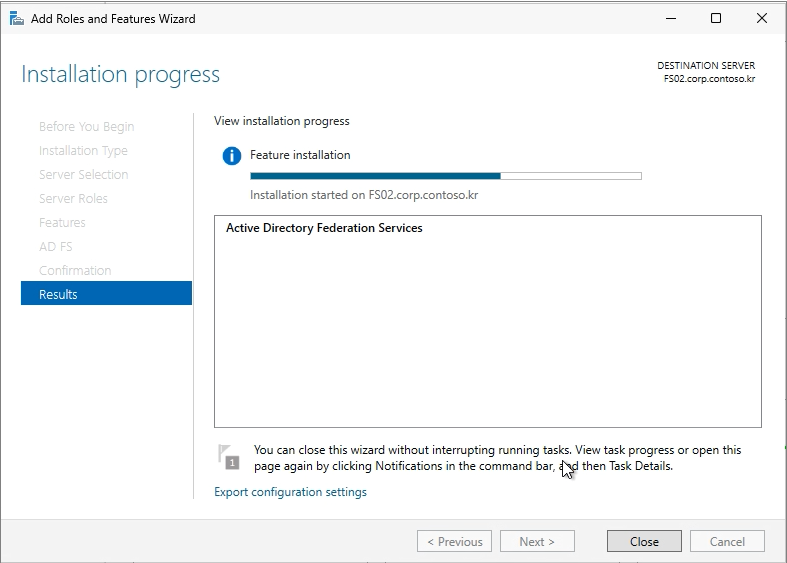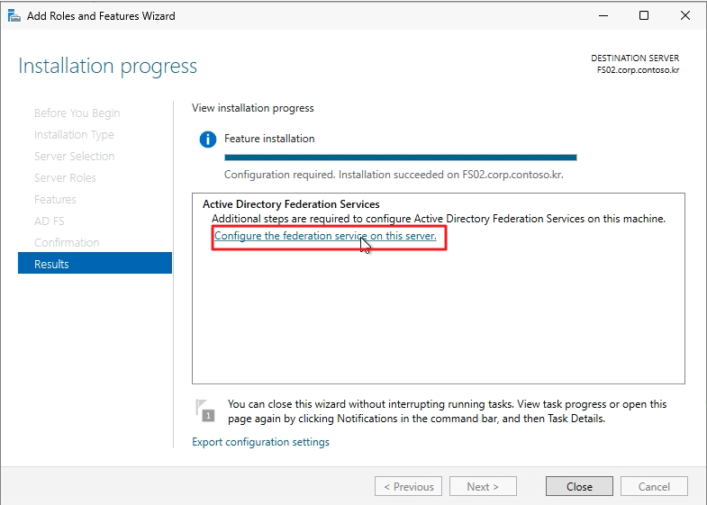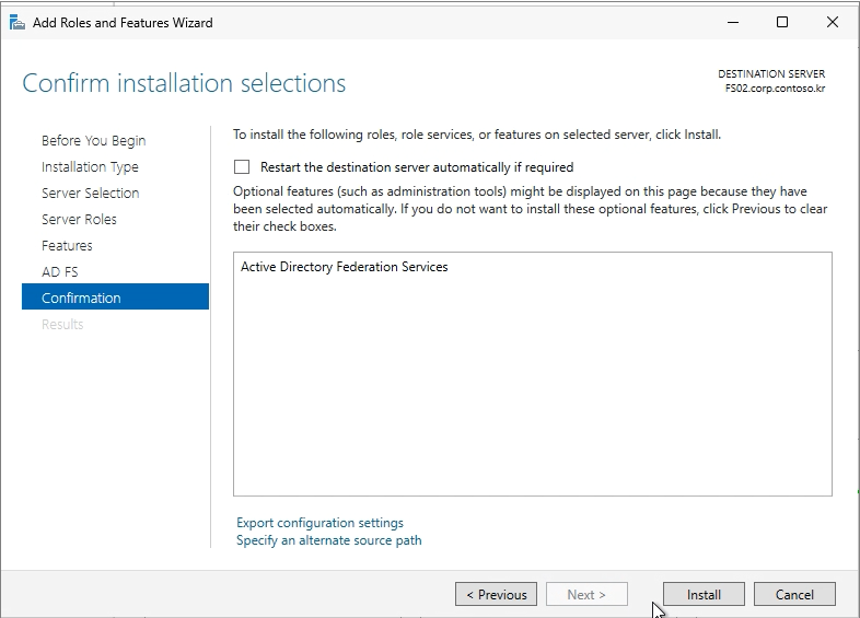 Active Directory Federation Services 역할 설치과정을 진행합니다.