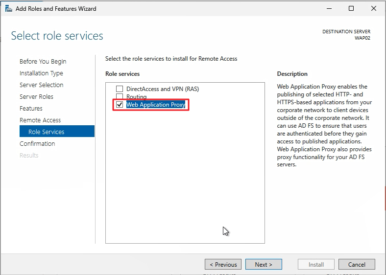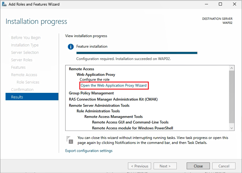 Remote Access - Web Application Proxy 역할 체크 해제 후 제거 과정 진행