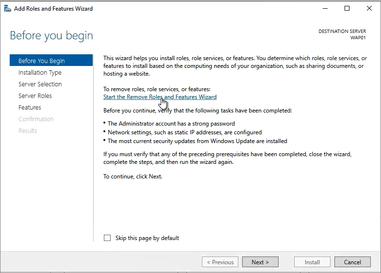 WAP2022에서 Start the Remove Roles and Features Wizard