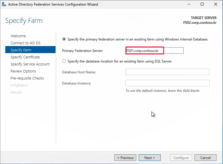 Set-AdfsSyncProperties -Role SecondaryComputer -PrimaryComputerName <2025서버>