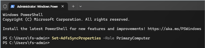 Set-AdfsSyncProperties -Role PrimaryComputer