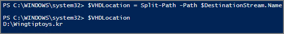 $VHDLocation = Split-Path -Path $DestinationStream.Name #[수정후]