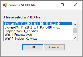 사실 VHDX 파일을 선택하는 구간이 더 이상 필요 없습니다. 이 부분을 문의하였습니다.