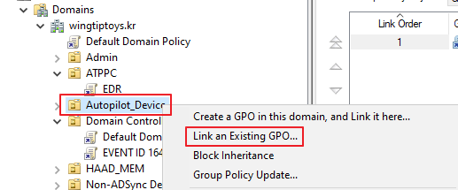 해당 정책을 컴퓨터 OU들과 연결합니다.