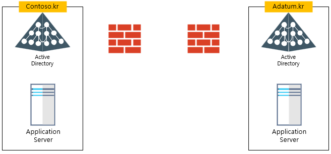 우선 조직 Contoso.kr 과 Adatum.kr이 존재하고, Adatum.kr의 구성원들은 Contoso.kr 의 Application Server에 Access 해야 합니다.