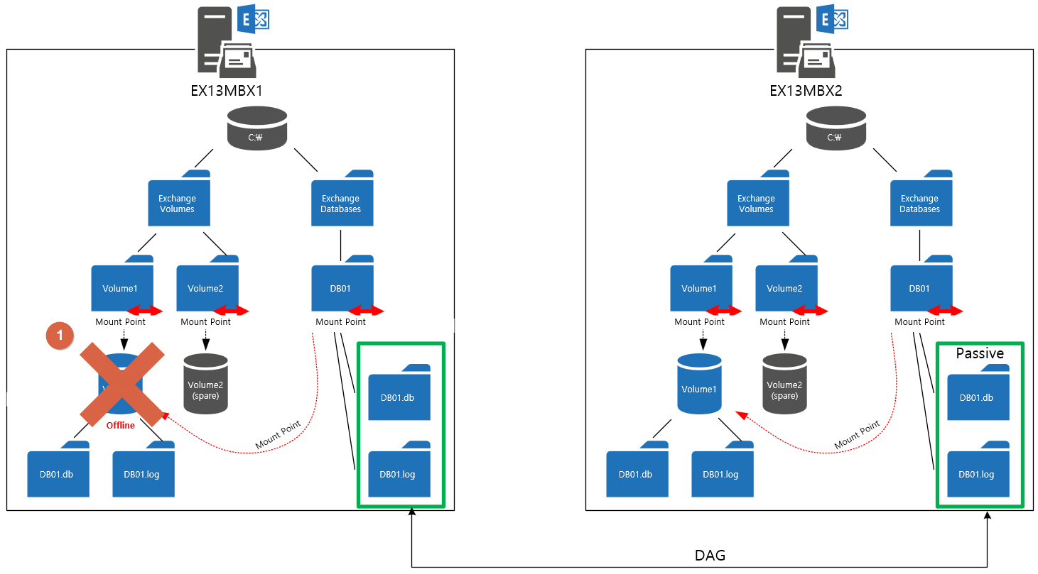 AutoReseed는 Exchange Server 2013 이후에 도입된 기능으로 Disk 이슈로 인하여 복제문제가 발생시 Spare(예비) Disk를 활용하여 자동 복제되도록 하는 기능입니다.
