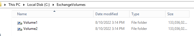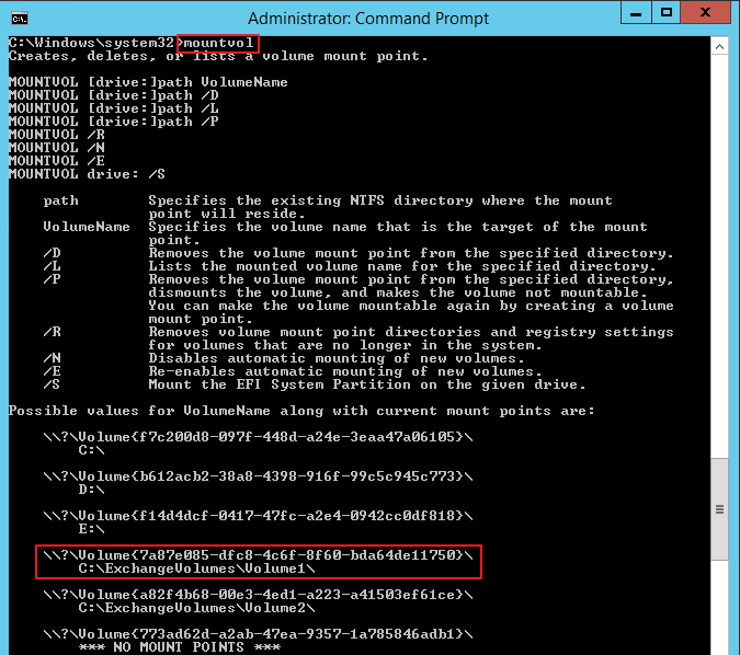 ExchangeDatabases 경로에서 다음 명령어로 해당 볼륨과 맵핑합니다.