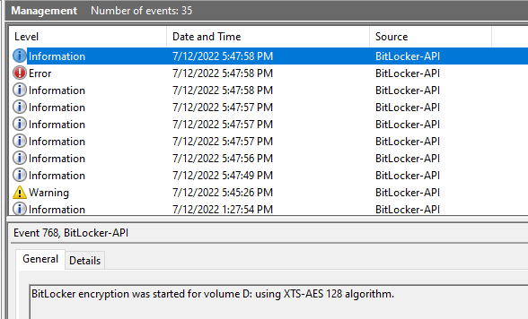 이벤트 로그 기록을 확인해보면, 복구 키도 Azure AD에 저장한 것으로 확인됩니다.