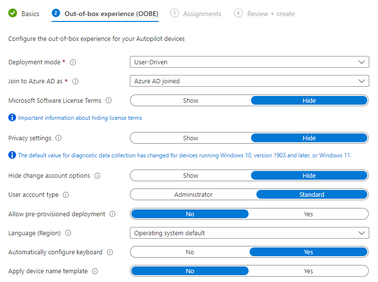 [단계3] Create and assign an Autopilot deployment profile