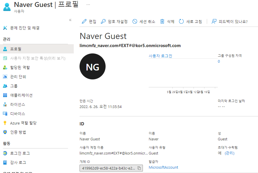 3. 초대된 사용자는 사용자 유형이 게스트 입니다.