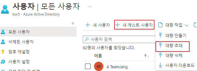 Azure Portal -> Azure Active Directory -> 새 게스트 사용자를 클릭합니다.