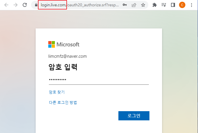 계정의 도메인을 인식하여 개인용 MS 계정인지 or 기업용 MS 계정인지 판단하고 로그인 프로세스가 진행됩니다.