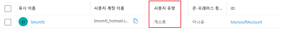 3. 초대된 사용자는 사용자 유형이 게스트 입니다.