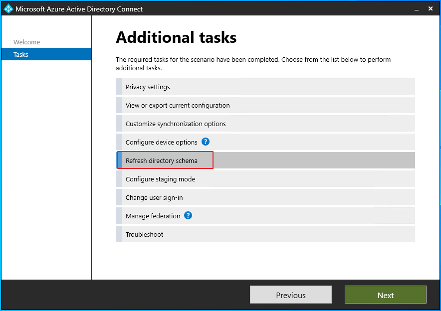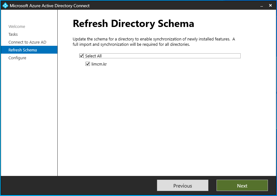그리고 Azure AD Connect 에서 Refresh directory schema 를 진행해야 합니다.