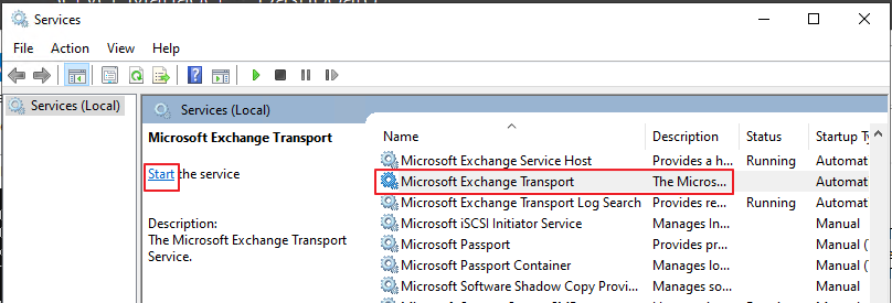 Microsoft Exchange Transport 서비스를 중지합니다.