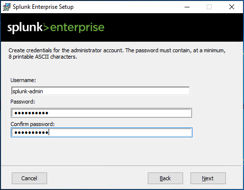 Splunk 에서 사용할 Admin 계정을 생성합니다.