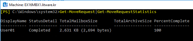 완료되면 아래와 같이 사서함이 Migration 된 것을 확인할 수 있습니다.