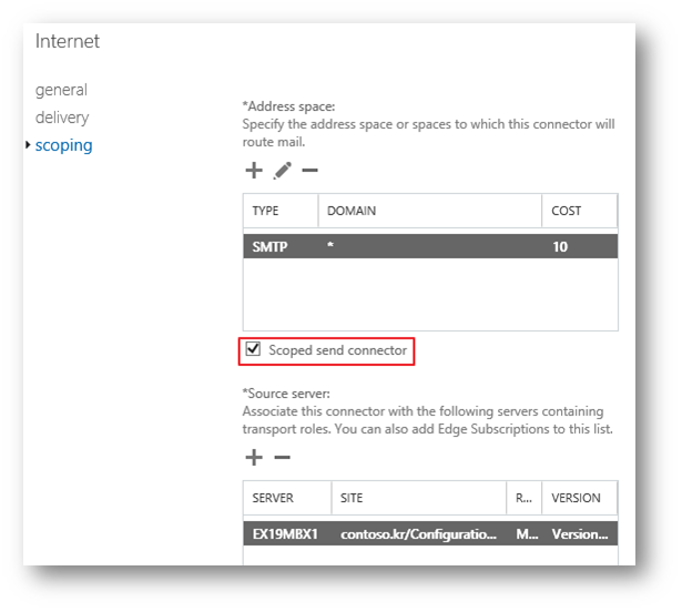 | At least one Mailbox server or Edge Transport server must be configured to host the connector. You can configure multiple source servers to provide load balancing and fault tolerance for the address spaces that are defined on the connector. 커넥터를 호스팅하려면 하나 이상의 사서함 서버 또는 Edge 전송 서버를 구성해야 합니다. 커넥터에 정의된 주소 공간에 대한 부하 분산 및 내결함성을 제공하도록 여러 원본 서버를 구성할 수 있습니다. |