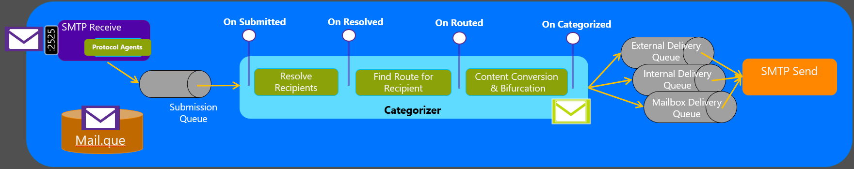 Mail flow 상의 Categorizer 에 대한 설명으로 확인됩니다.