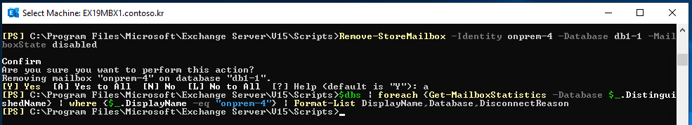 Remove-StoreMailbox -Identity onprem-4 -Database db1-1 -MailboxState disabled