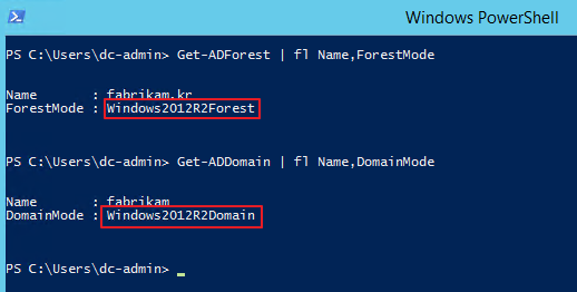Active Directory 포리스트 기능 수준은 Windows Server 2012 R2 이상입니다.