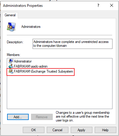 Exchange Trusted Subsystem 을 추가